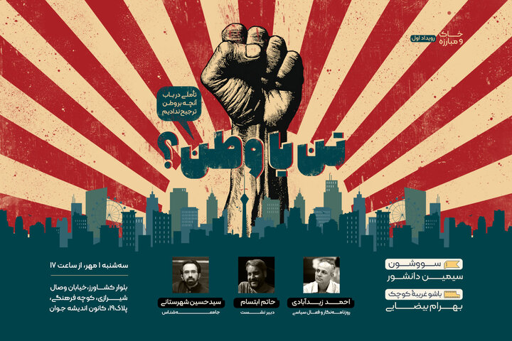 این رویداد که اولین نشست از سلسله نشست‌های «خاک و مبارزه» است، به مناسبت هفته دفاع مقدس به واکاوی مفهوم وطن در هنگام مبارزه می‌پردازد.