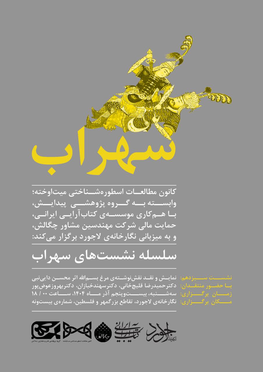 سلسله نشستهای «سهراب» با آرمان جوانگرایی، و با رویکردی اسطورهشناختی بر آن است که با نمایش، نقد، و تحلیل آثار هنری که با گوشهی چشمی به اسطورههای ایرانی خلق شدهاند، به شناسایی و معرفی هنرمندان جوان میپردازد. این نشستها از سوی کانون مطالعات اسطورهشناختی میتاوخته وابسته به گروه پژوهشی هنر و معماری پیدایش و با همکاری موسسهی کتابآرایی ایرانی، هر ماه یک بار برگزار میشود.