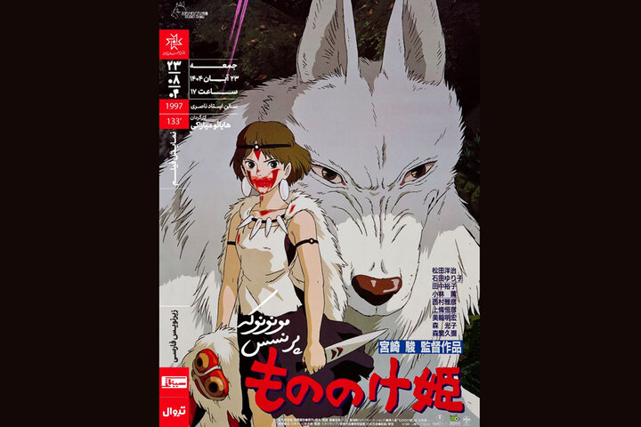 به گزارش پایگاه خبری هفت‌رخ، فیلم انیمه سینمایی «پرنسس مونونوکه» محصول سال ۱۹۹۷ و ساخته هایائو میازاکی، ساعت ۱۷ جمعه ۲۳ آبان در سالن ناصری خانه هنرمندان ایران به نمایش درمی‌آید.