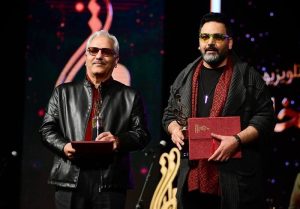 تندیس بهترین دستاورد فنی و هنری تلویزیونی که برای اهدای جایزه سام نوری، سیاوش خیرابی و شهره سلطانی روی صحنه حاضر شدند.