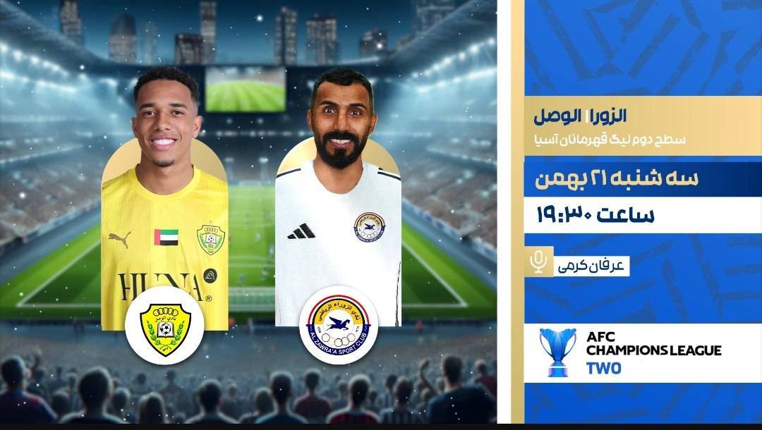 شبکه ورزش در چارچوب رقابت های فوتبال سطح دوم ليگ قهرمانان آسیا، شامگاه امشب سهشنبه ۲۱ بهمن از ساعت ۱۹:۳۰، دیدار تیم های الوصل و الزورا را با گزارشگری عرفان کرمی و به صورت زنده پخش خواهد کرد.