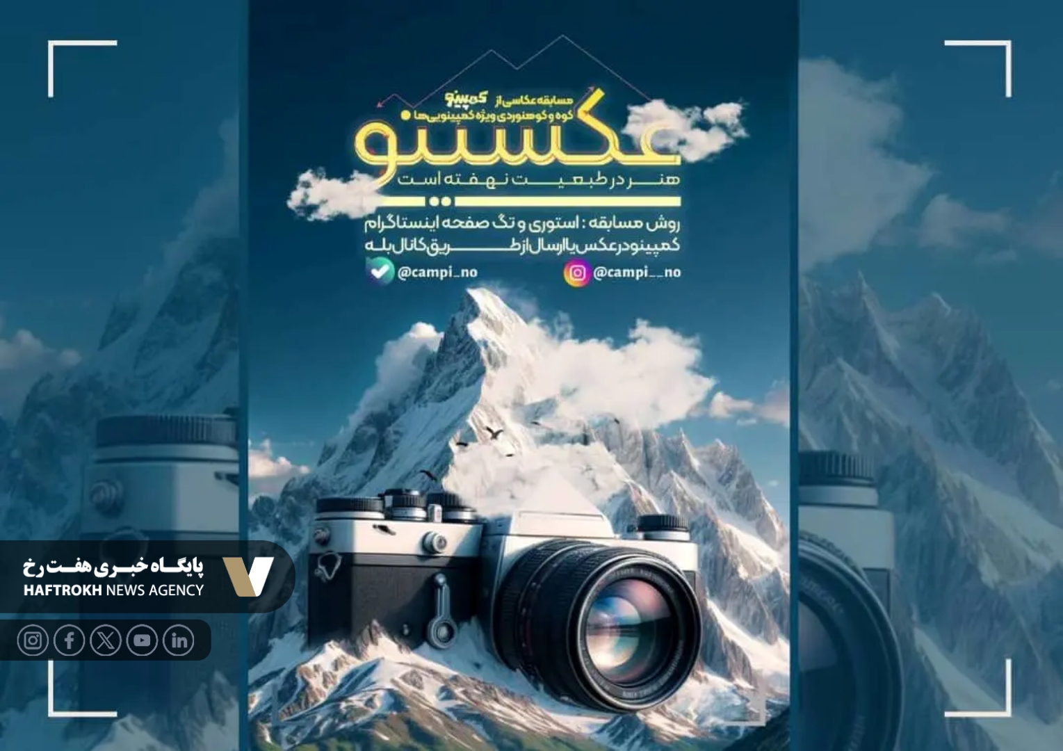 به گزارش پایگاه خبری هفت‌رخ، در ادامه برگزاری کمپ کوهنوردی ویژه نوجوانان با نام «کمپینو» فرهنگسرای خاتم حالا در حال تلاش برای برگزاری مسابقه عکاسی «عکسینو» ویژه عکاسان علاقمند به عکاسی از کوهستان و طبیعت را برگزار میکند.