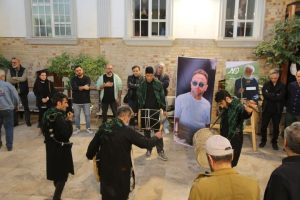 پس از تمام شدن مراسم، حاضران به همراه خانواده جواد گنجی به حیاط خانه سینما رفتند و دقایقی مانده به اذان مغرب و افطار به یاد این سینماگر سنج و دمام نواخته شد.