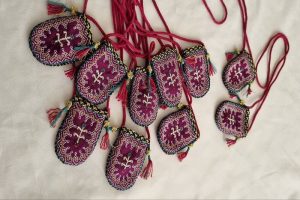 وی ادامه داد: نوارهای دوختهشده روی کیسهها، اشکال و حاشیههای متنوع، بندهای بهکاررفته در قسمت بالای کیسه و تزیین گرهسرشتی موسوم به «شمسک» از خصوصیات منحصربهفرد این آثار است.