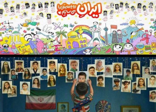 دیوارنگاره میدان انقلاب و تالار اندیشه میزبان شهدای کودک جنگ ۱۲ روزه